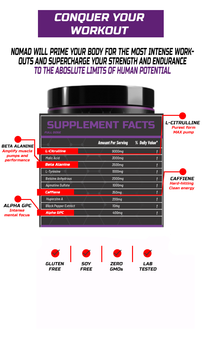 Bri After taking nomad I've seen a big improvement in my workouts. I'm able to lift heavier weights, I'm able to go for longer runs, and I'm just generally feeling more energetic and motivated. I would definitely recommend this product to anyone who is looking for a pre workout supplement that works.